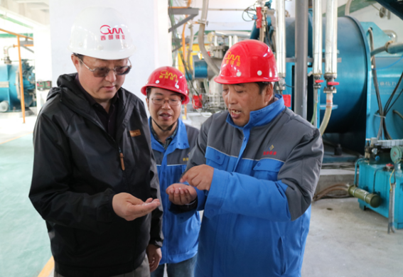 白永強(qiáng)首先到10萬(wàn)噸/年高純氫氧化鎂項(xiàng)目試生產(chǎn)現(xiàn)場(chǎng),詳細(xì)了解鹵水、鍋爐、氫氧化鎂及石灰蒸氨等車間生產(chǎn)情況。對(duì)每個(gè)車間、每道工序,從物料運(yùn)輸、工藝流程、技術(shù)參數(shù)到生產(chǎn)成本各環(huán)節(jié)逐一詢問(wèn)。在鹵水車間,白永強(qiáng)詳細(xì)詢問(wèn)了礦產(chǎn)資源管理,強(qiáng)調(diào)了礦產(chǎn)資源管理工作的重要性,要求有專人負(fù)責(zé),一切危害到礦產(chǎn)資源安全的事情都要嚴(yán)格按照有關(guān)程序,向主管部門如實(shí)反映。在鍋爐車間,針對(duì)鍋爐脫硫、蒸汽量、煤耗等情況,白永強(qiáng)要求脫硫技術(shù)難題可以與大美煤業(yè)的有關(guān)技術(shù)人員進(jìn)行溝通,強(qiáng)化分析與攻關(guān)。生產(chǎn)運(yùn)行部張洪幫、車間主任宋磊對(duì)有關(guān)蒸氨塔蒸量低、能耗大及氯化鈣排放及氫氧化鎂生產(chǎn)流程中出現(xiàn)的反應(yīng)時(shí)間短、粒徑細(xì)和皮帶廊二次污染等問(wèn)題均做了細(xì)致回答。在氧化鎂和鎂砂車間,白永強(qiáng)聽(tīng)取了設(shè)備安裝、技改各項(xiàng)工作的匯報(bào),同時(shí)明確了完成各項(xiàng)工作任務(wù)的節(jié)點(diǎn)目標(biāo)。